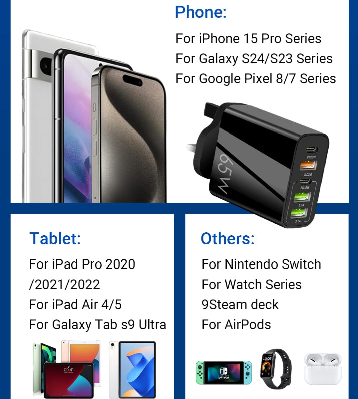 🎉Ventes chaudes - 50 % de réduction👍[Cadeau pratique] Chargeur rapide 65 W à ports multiples 5 en 1