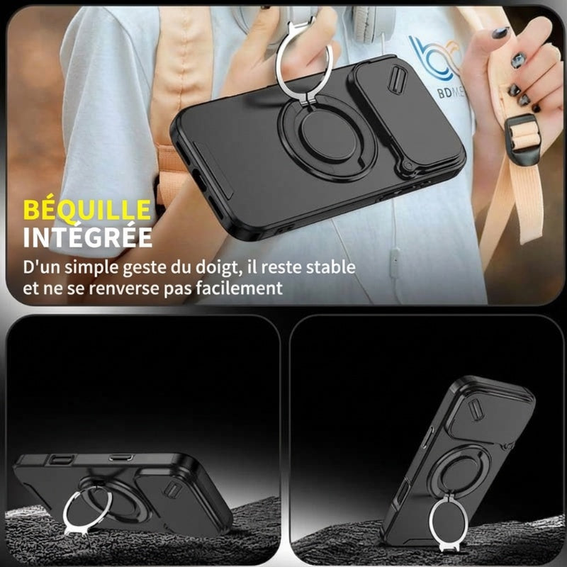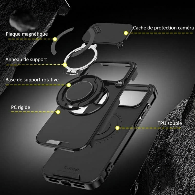 Matériaux : Contour en TPU, coque en polycarbonate, base d'anneau en métal
