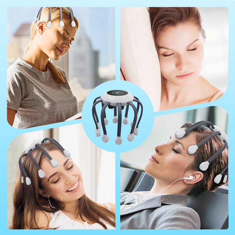TECHNOLOGIE DE MASSAGE MULTIPOINT AVANCÉE - Doté de 14 nœuds de massage indépendants avec une distribution à 360° en forme de matrice ponctuelle et de treillis, cet appareil de massage offre une stimulation précise et complète. Son design créatif imite celui d'une pieuvre, garantissant ainsi que chaque zone du cuir chevelu est atteinte pour une relaxation et un soulagement des tensions inégalés.