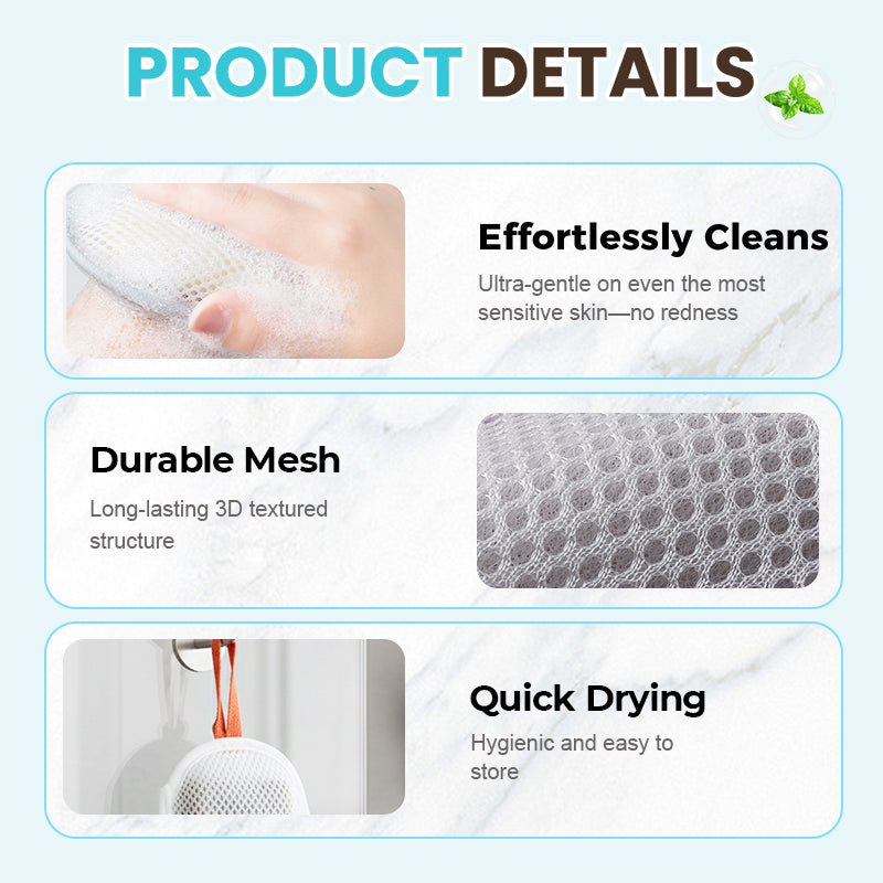 MOUSSE ONCTUEUSE – Conçue avec une structure en maille 3D qui aide à générer une mousse riche et dense avec seulement une petite quantité de savon. Sa texture homogène permet de créer facilement des bulles luxueuses qui nettoient en profondeur tout en offrant une expérience rafraîchissante, comme dans un spa, à la maison.