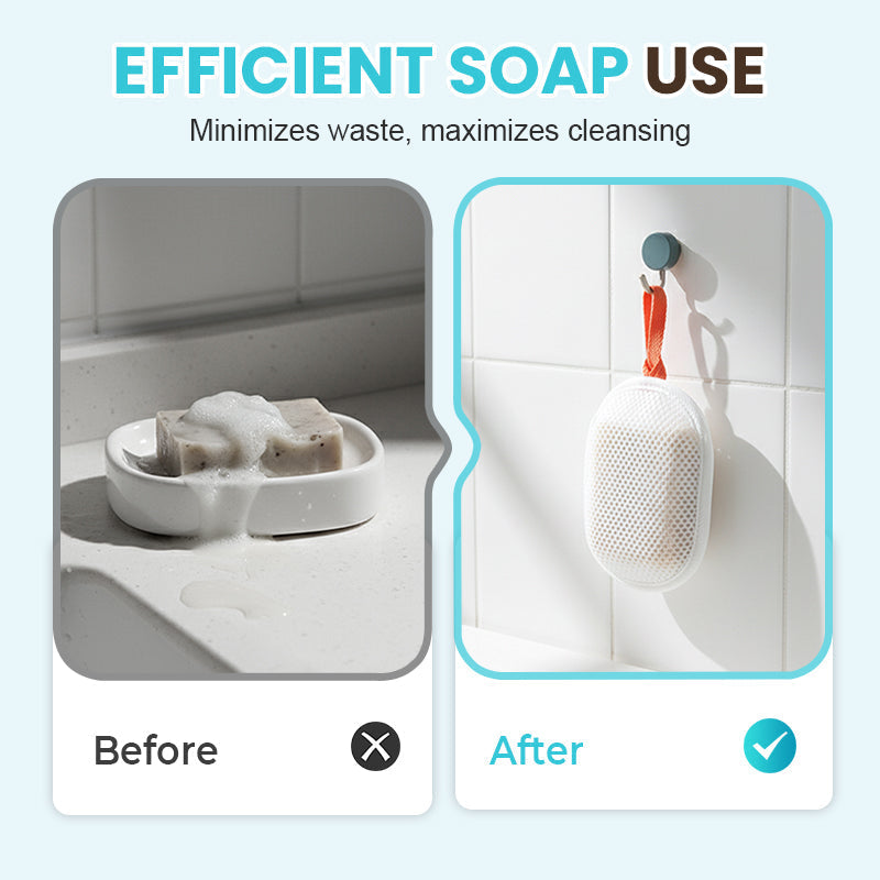 UTILISATION EFFICACE DU SAVON – Il suffit de placer votre savon dans la pochette et de frotter pour faire mousser. La conception garantit que chaque morceau de savon est entièrement utilisé, ce qui minimise le gaspillage tout en gardant vos mains propres. Idéal pour les adultes comme pour les enfants, il allie praticité et hygiène.