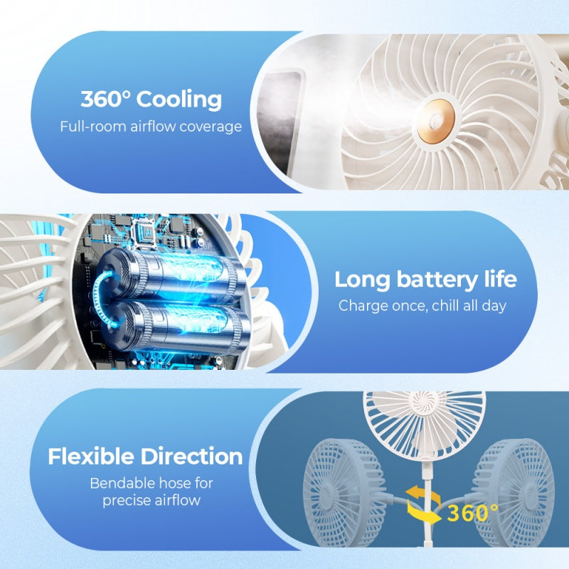 COUVERTURE DE REFROIDISSEMENT À 360° - Dites adieu aux coins étouffants ! La conception à rotation complète de notre ventilateur vous offre une brise rafraîchissante exactement là où vous en avez besoin. Ce ventilateur rigide et fixe ? C'est de l'histoire ancienne. Le tuyau flexible s'adapte exactement à vos envies. Confort en quelques secondes, sans aucun tracas.