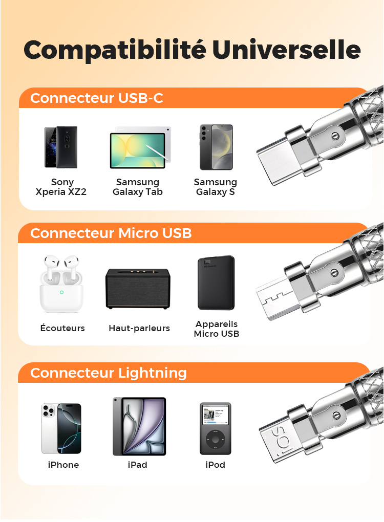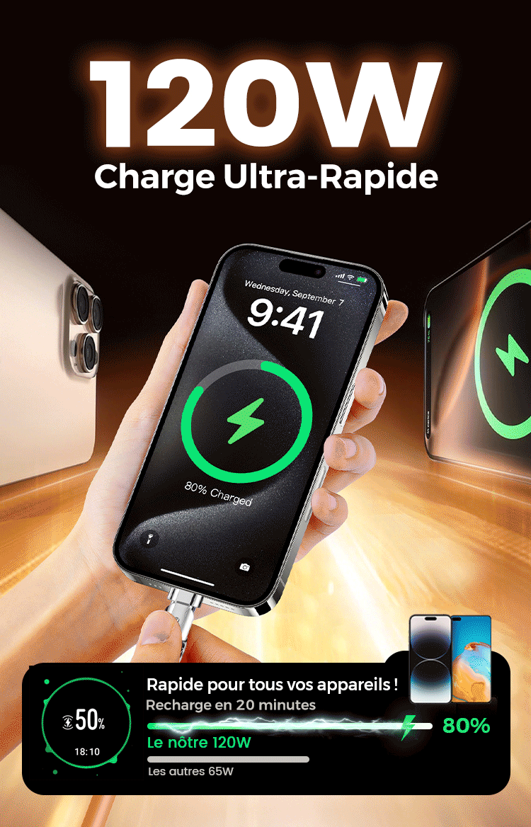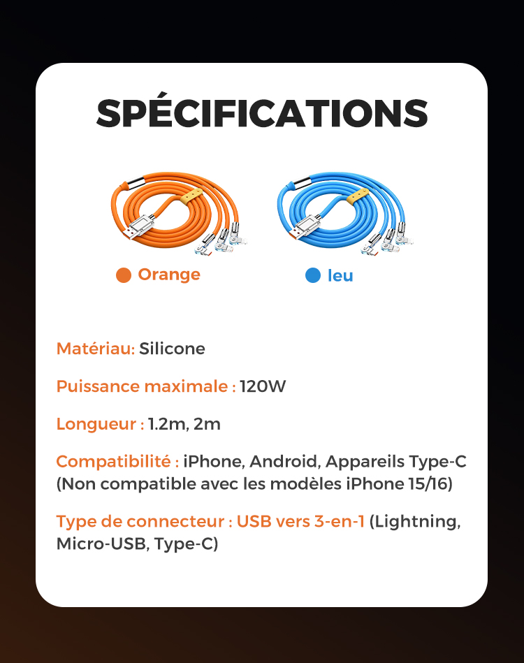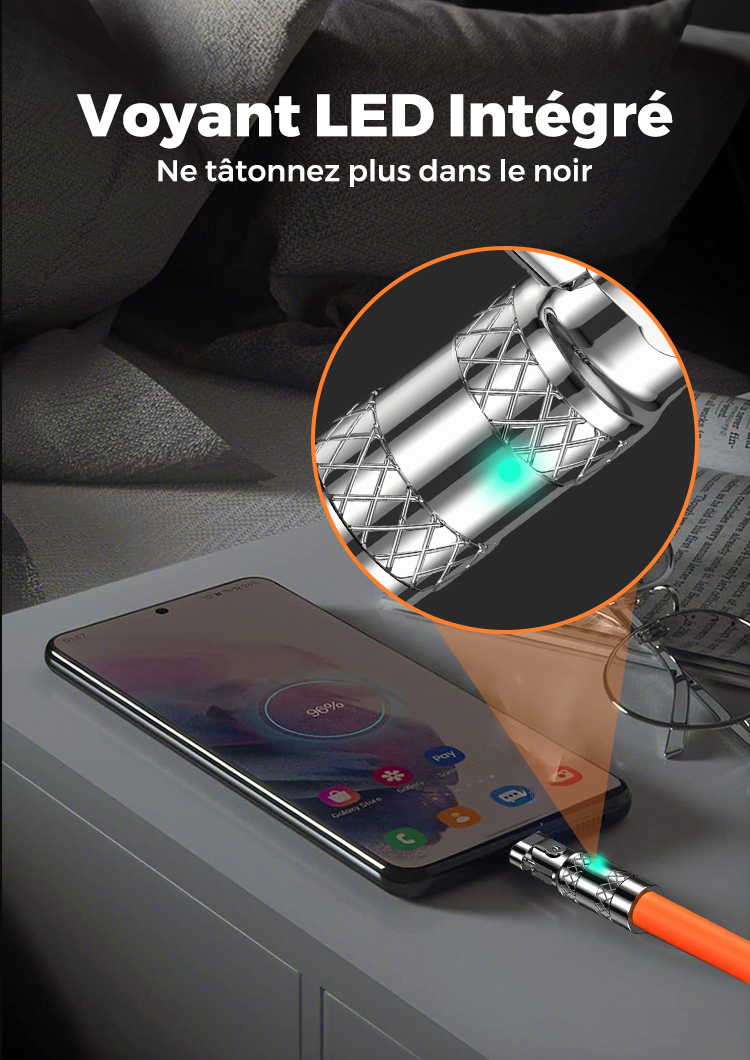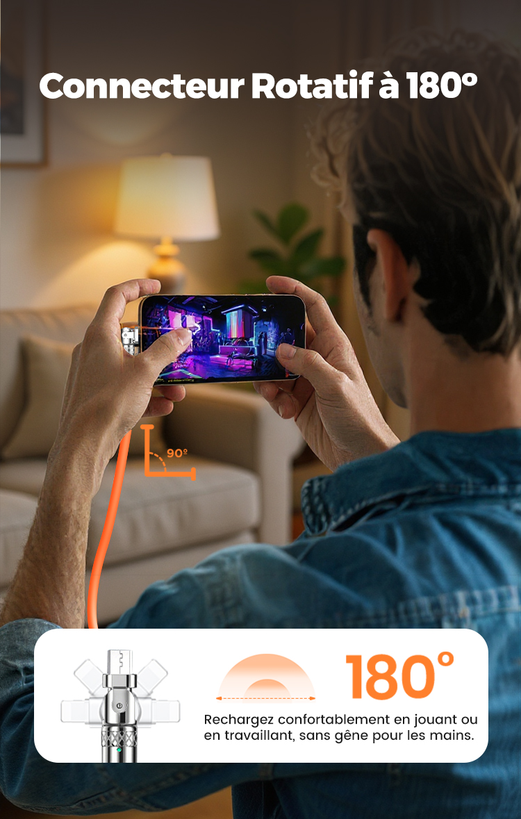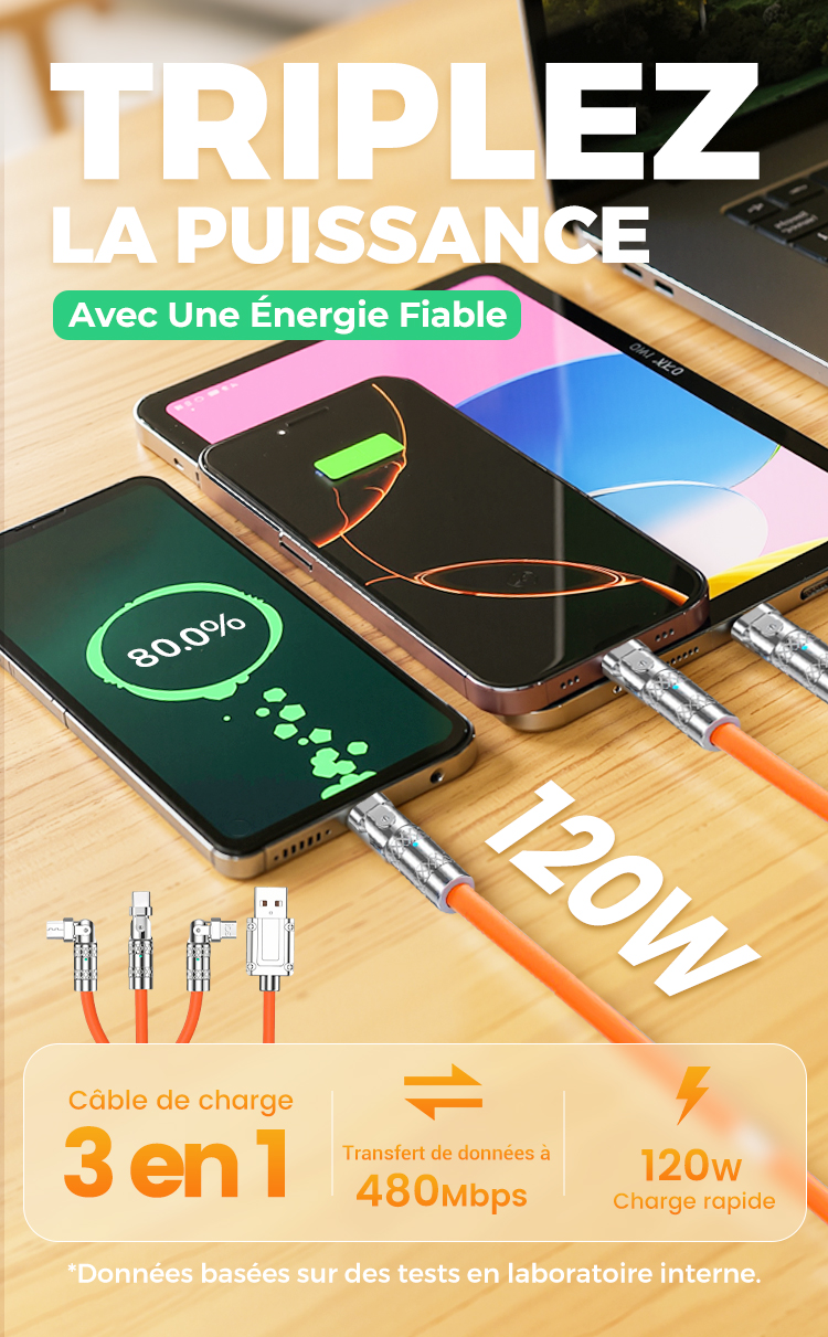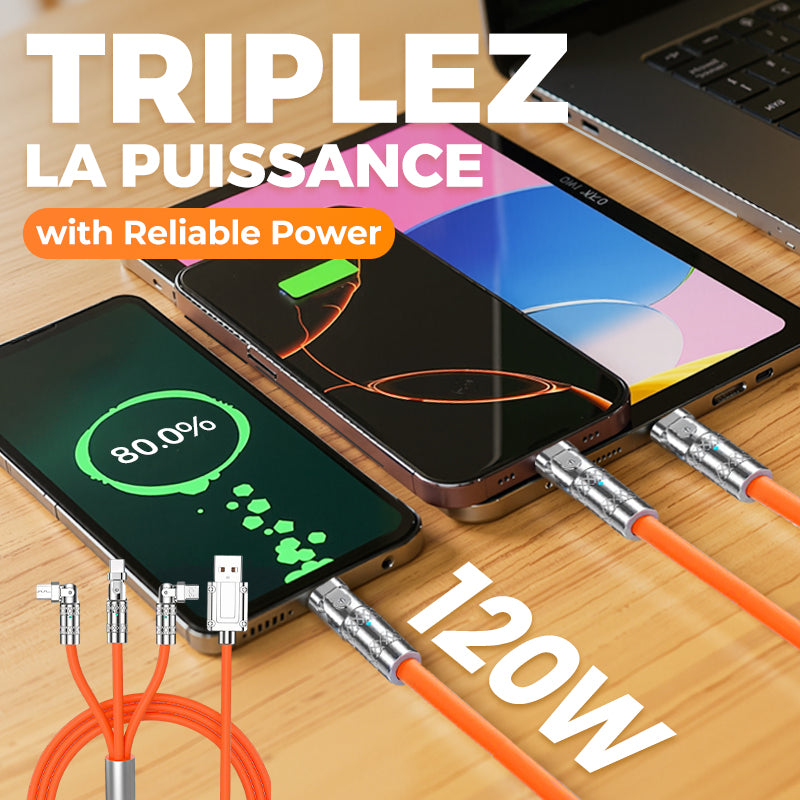 🔥🔥Câble de Charge Rapide 3-en-1 180° Rotatif 120W🔥 (Câble de chargement rotatif)