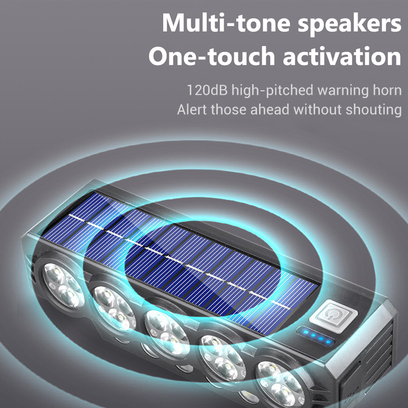 SYSTÈME DE CHARGE DOUBLE - Combine la charge par panneau solaire et un port Type-C rapide, garantissant que votre éclairage reste allumé pendant les longs trajets, offrant un éclairage fiable et une tranquillité d'esprit sans vous soucier de l'autonomie de la batterie.