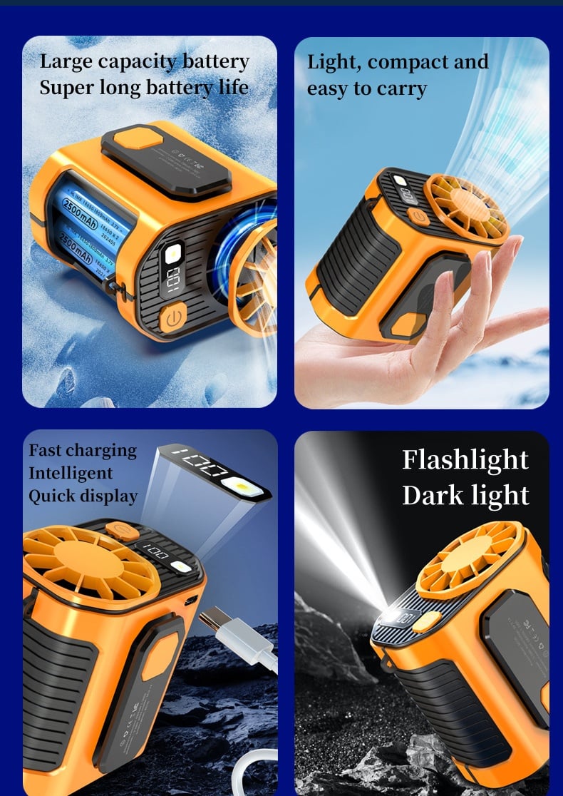 Portable et anti-chute:Le ventilateur portable rechargeable est fabriqué en matériau PP anti-chute et en boîtier résistant aux chocs, et est adapté à une taille portable pour les activités de plein air telles que le camping, la randonnée et les réparations de voiture.  ; En tant que ventilateur de table rechargeable silencieux, il est également parfait pour les activités d'intérieur dans les bureaux, les chambres, les réunions de famille, les jardins, etc.