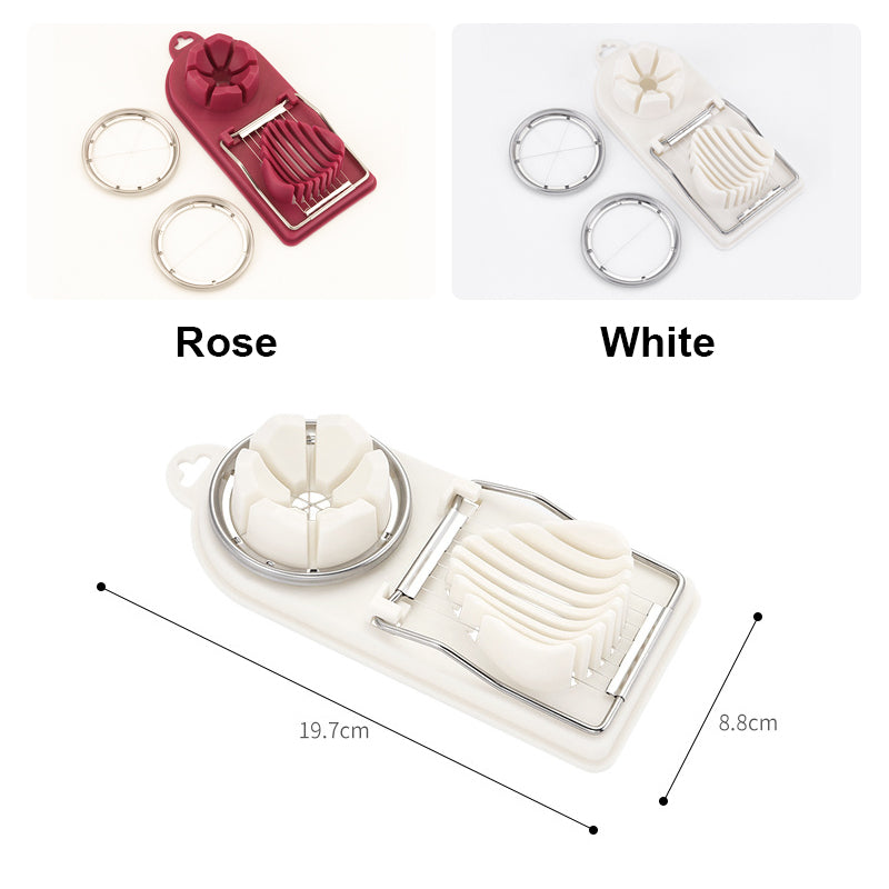 Ce coupe-œufs multifonctionnel a trois fonctions : couper en tranches, couper en deux et couper en plusieurs morceaux. Il se compose d'une base et d'un outil de coupe. Il est parfait pour couper des œufs, des champignons et d'autres fruits et légumes. Même les débutants en cuisine peuvent rapidement préparer des ingrédients parfaits.